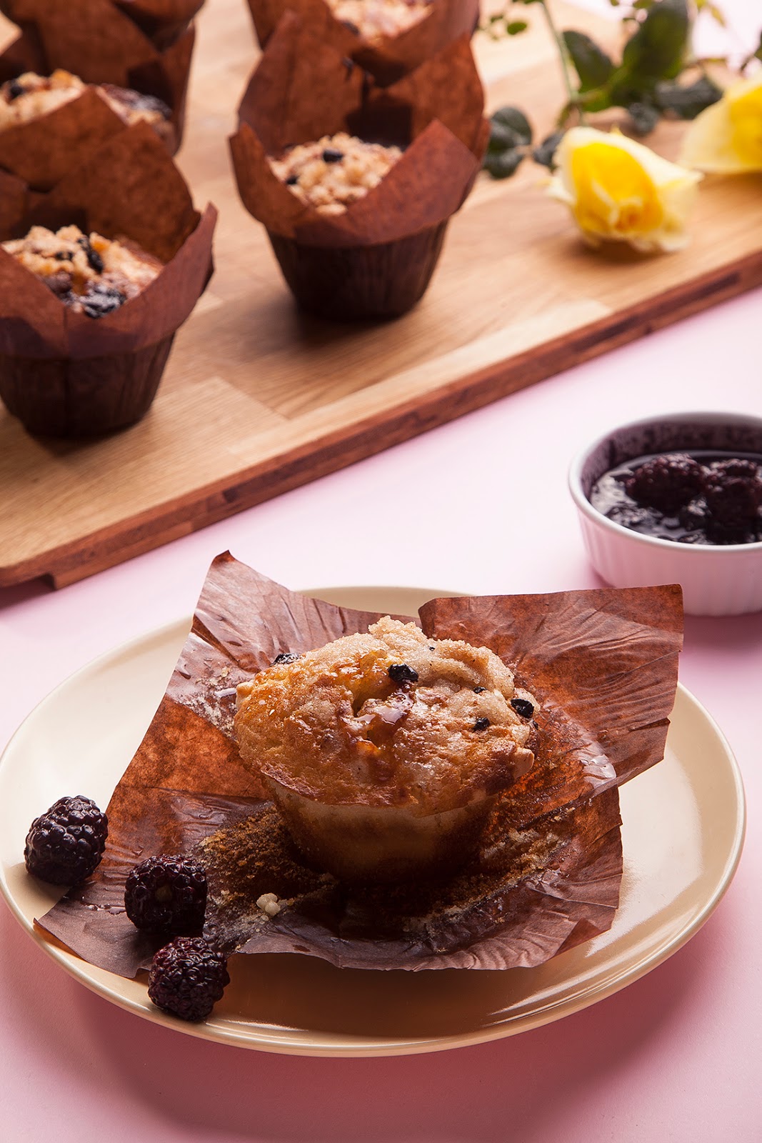מקציפים את החמאה עם הסוכר ומוסיפים בהדרגה את הביצים, הווניל והחלב, מוסיפים מחצית מכמות הקמח ומערבבים לעיסה אחידה, את חצי מיתרת הקמח מערבבים עם האוכמניות הקפואות ומקפלים לתוך המסה.